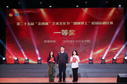 5月25日晚,第二十五届“金秋杯”艺术文化节“剧映理工”校园话剧比赛在马房山校区大礼堂圆满落幕。管理学院艺术团凭借原创话剧《屋顶上的回响》荣获一等奖第一名,展现了管理学院学子在艺术表现和志愿服务精神传承上的卓越风采。